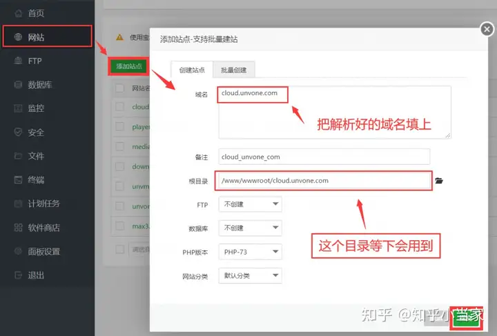 1.进入宝塔面板创建网站